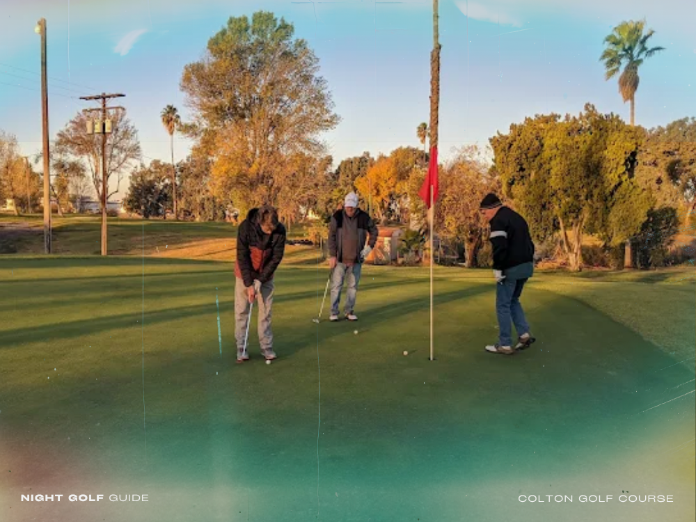Colton Golf Course in Southern California offers an affordable, walkable 18-hole par 3 layout. Perfect for beginners and locals, it features ambient lighting for night play, a putting green, pro shop, and rentals for a community-focused evening golfing experience.